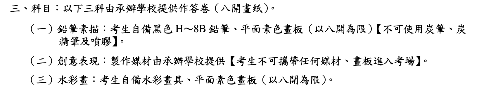 術科考試:鉛筆|水彩|創意表現