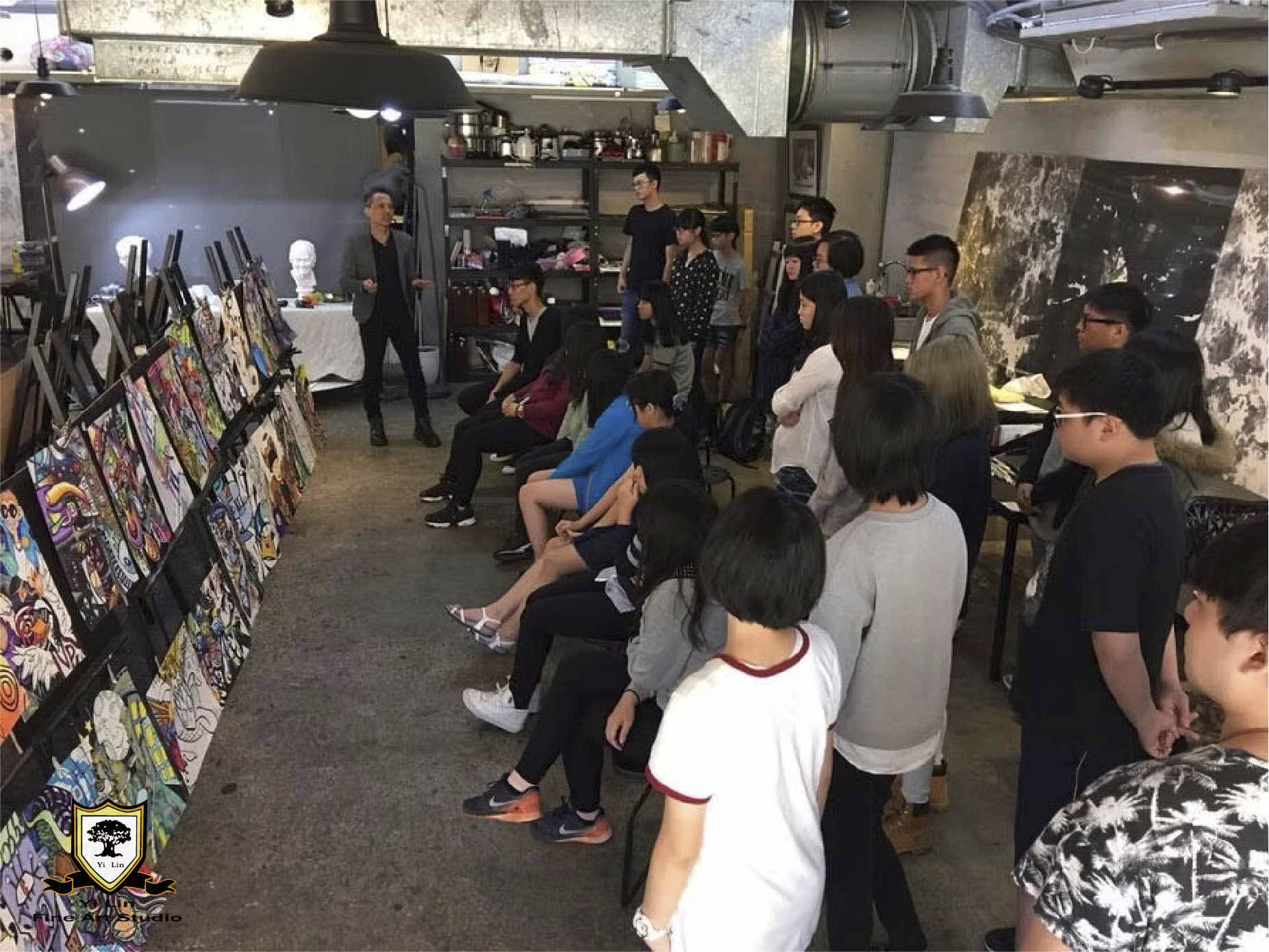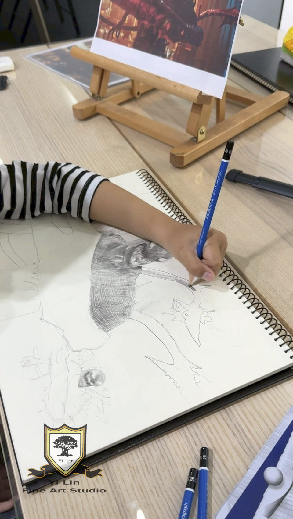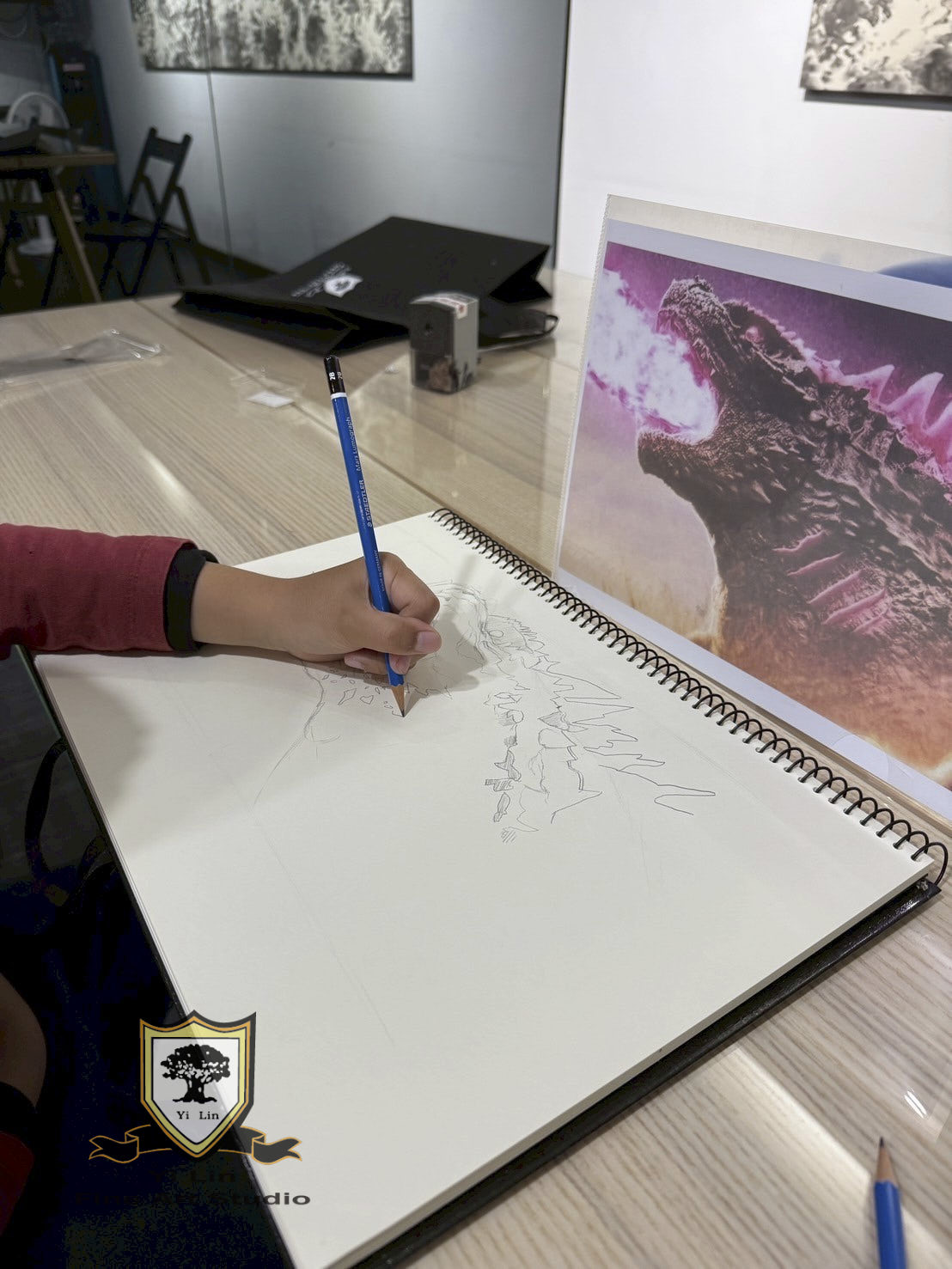 暑期學生美展專班,針對學生美術作品一對一討論構圖及進度。