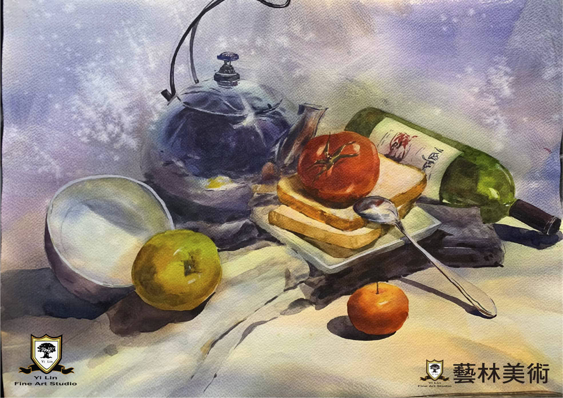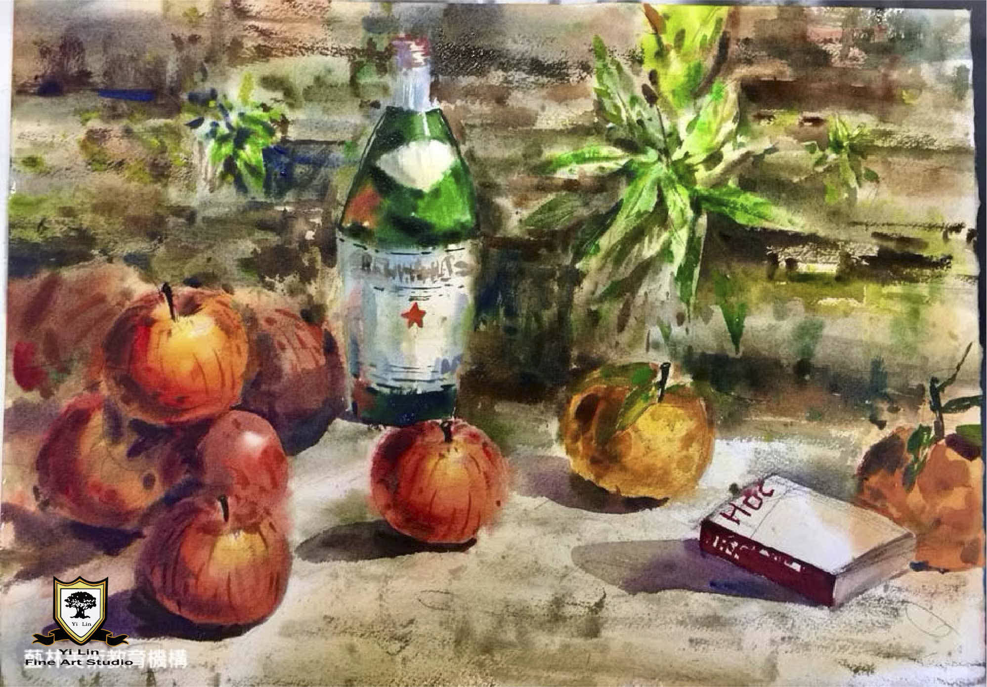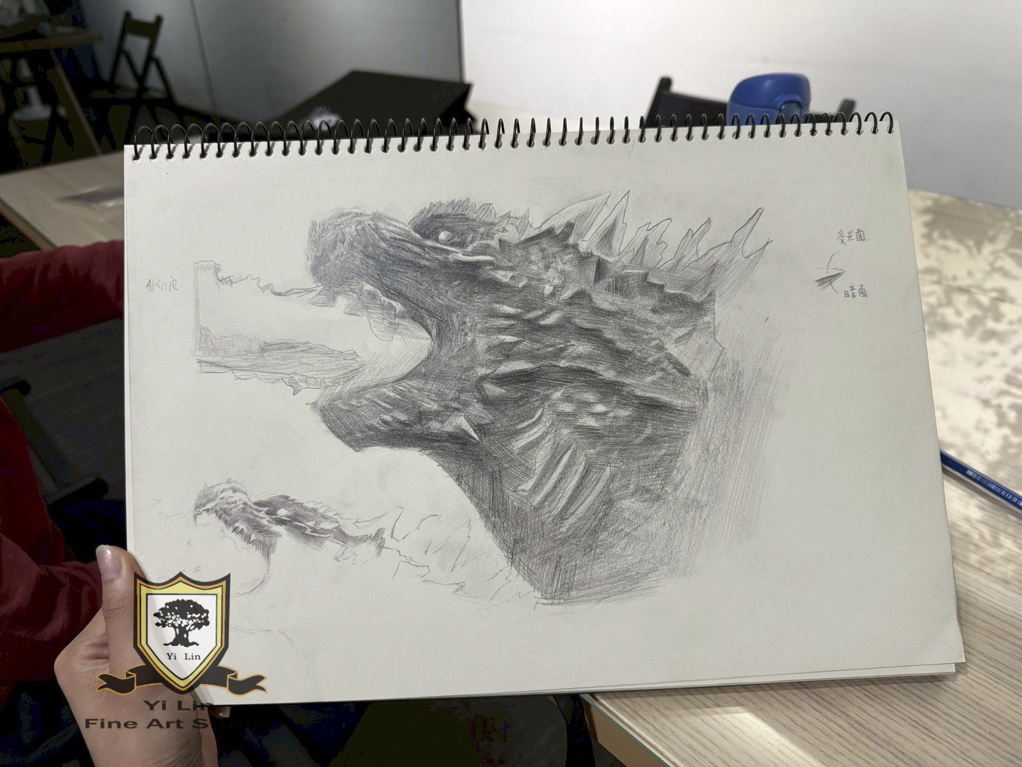 暑期學生美展專班,針對學生美術作品一對一討論構圖及進度。