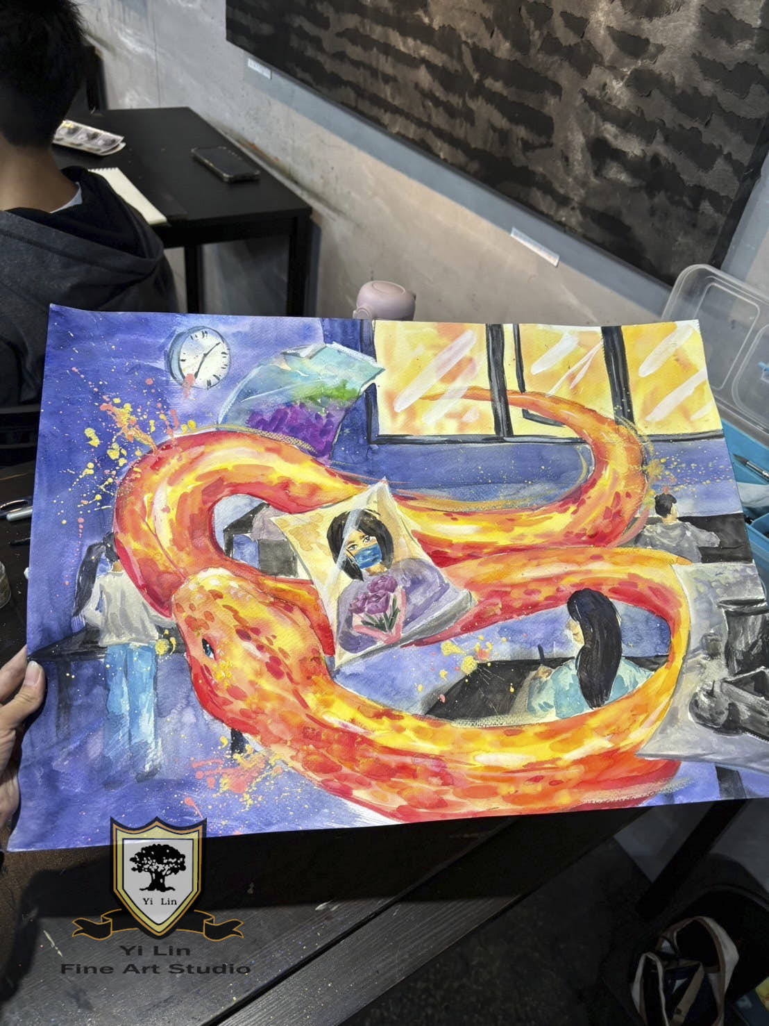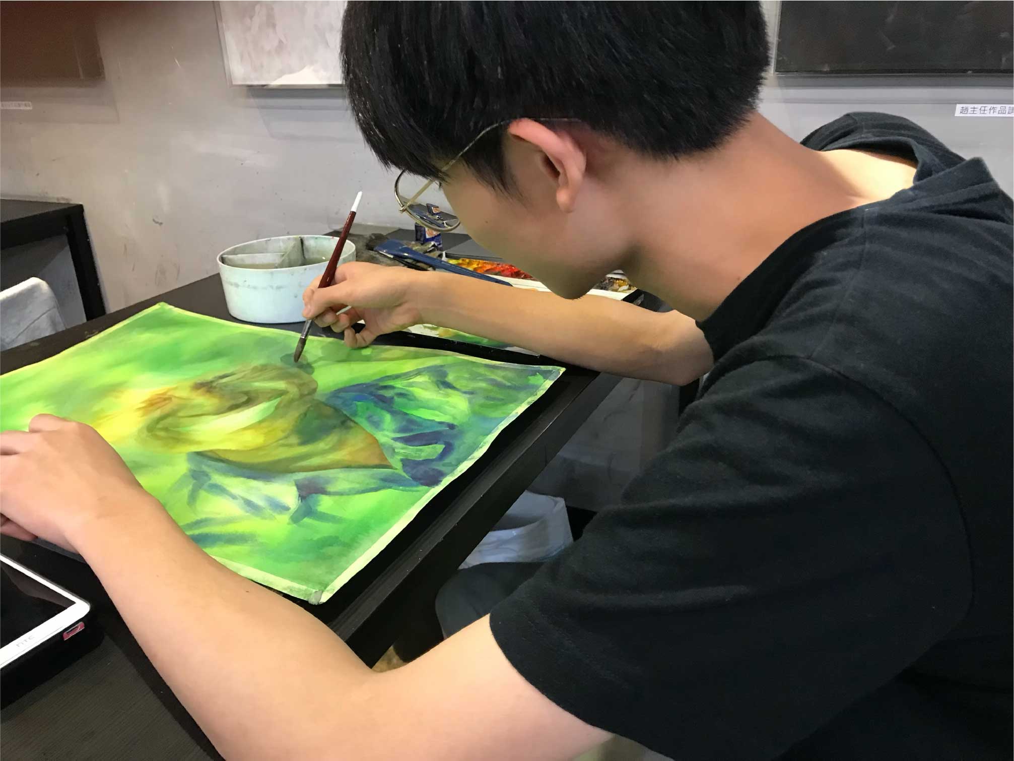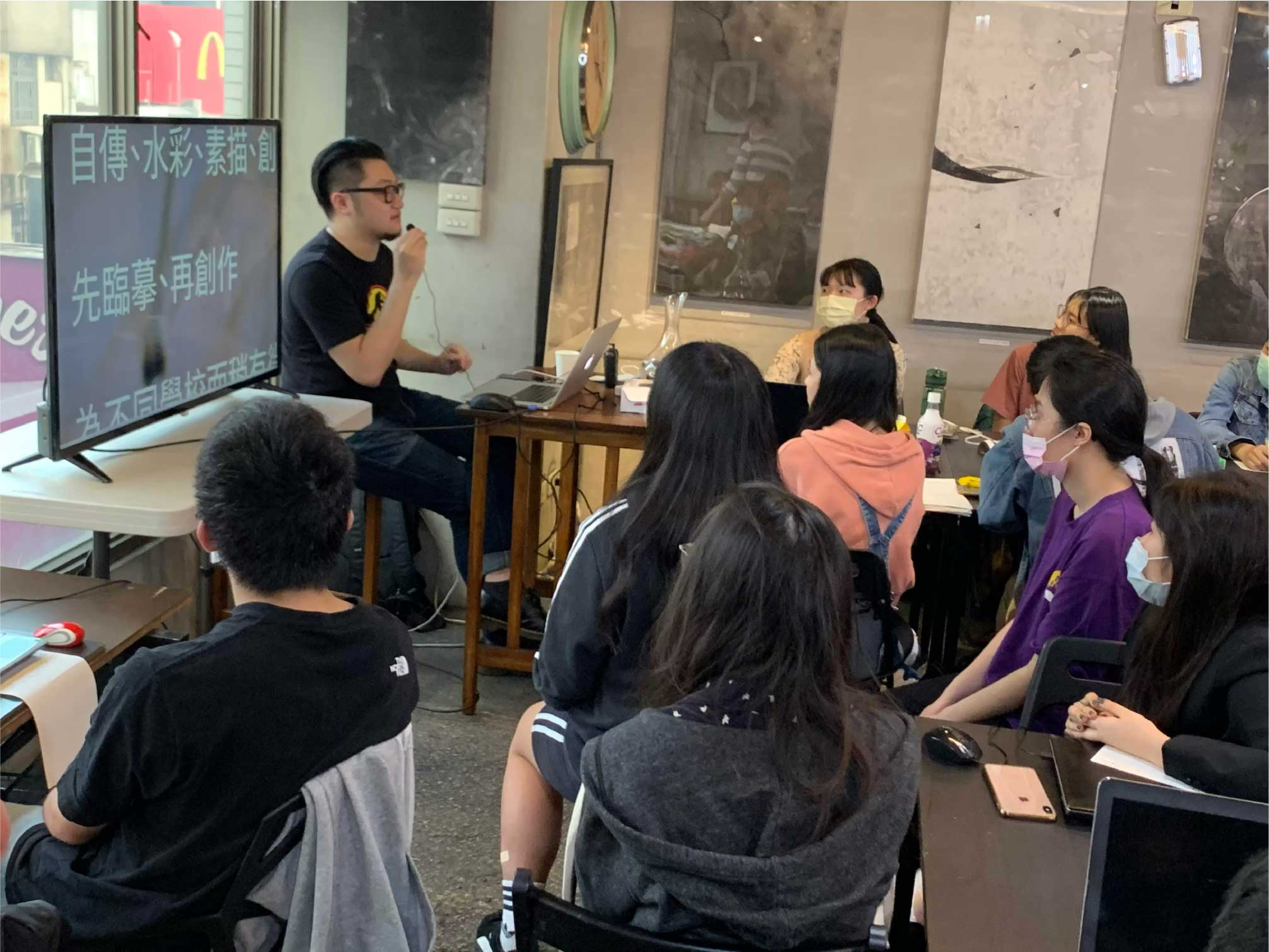 暑期學生美展專版,針對學生美術作品一對一討論構圖及進度。
