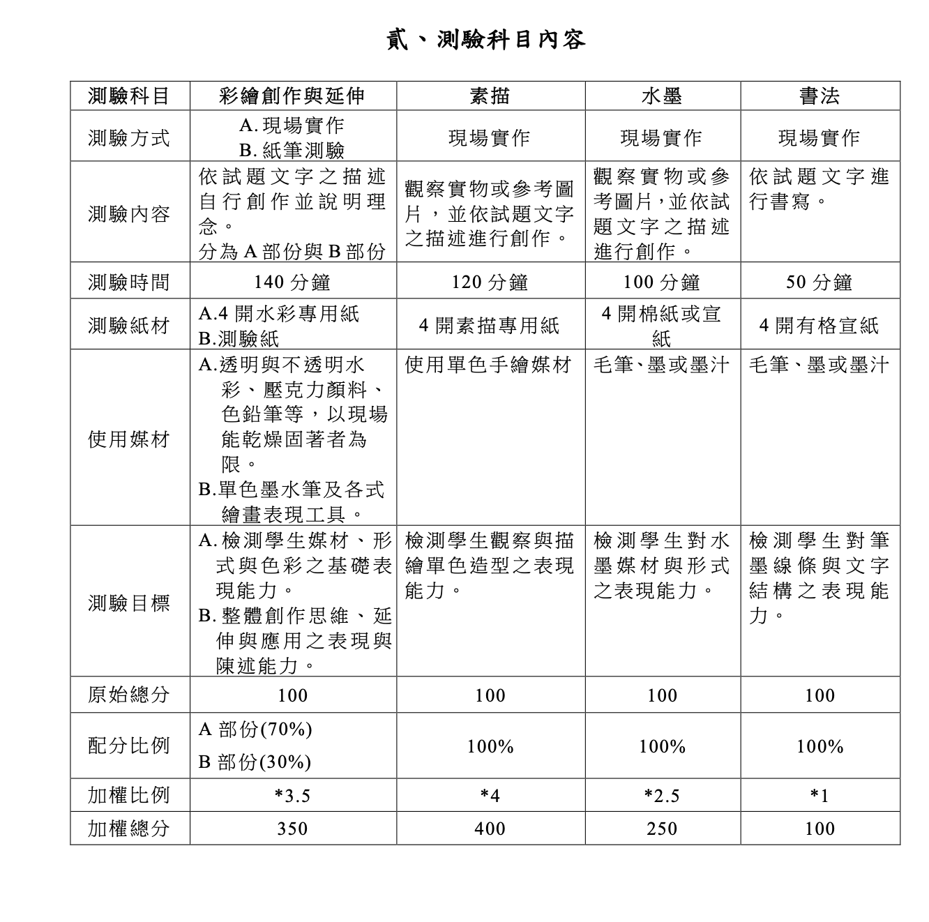 術科考試:素描|彩繪創作與延伸|水墨|書法