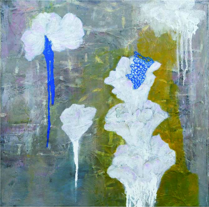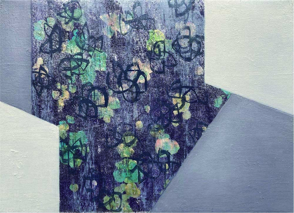 藝術家總是為了創作不停的在與時間競賽,也因為他們的創作往往與其生活作為連結而密不可分。我比較好奇的是目前擔任多個畫會執行長頭銜的藝術家陳昱儒,是如何有效的在繁忙業務中,分出時間創作出這麼多的作品來。一位有效的時間管理者,他能將有限的時間有條不紊的分別安排規劃妥貼。陳昱儒的創作融合版畫與複合媒材,透過歷史文化的思辯沉澱,圖像與文字呈現創作的主軸,帶有象徵意涵而發人生省。台北藝術大學美術系碩士畢業的郭淑莉,她以幾何抽象風格創作為主,擅長不定型結構的創作表現,個人風格鮮明而具備當代特質。她的作品研討內在存在與虛無感,屬於某種情感意識的流動與衝擊,對外在世界的現象作整合與比較,分割式的抽象畫面散發出不確定性的幽微樣貌。郭淑莉除了藝術家身分,本身也是兼職歌手,悠遊在跨界的不同表現中而遊刃有餘,是被期待的藝術家。