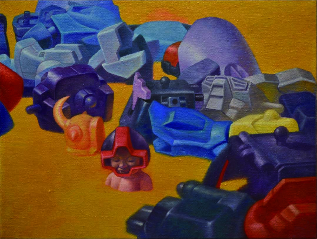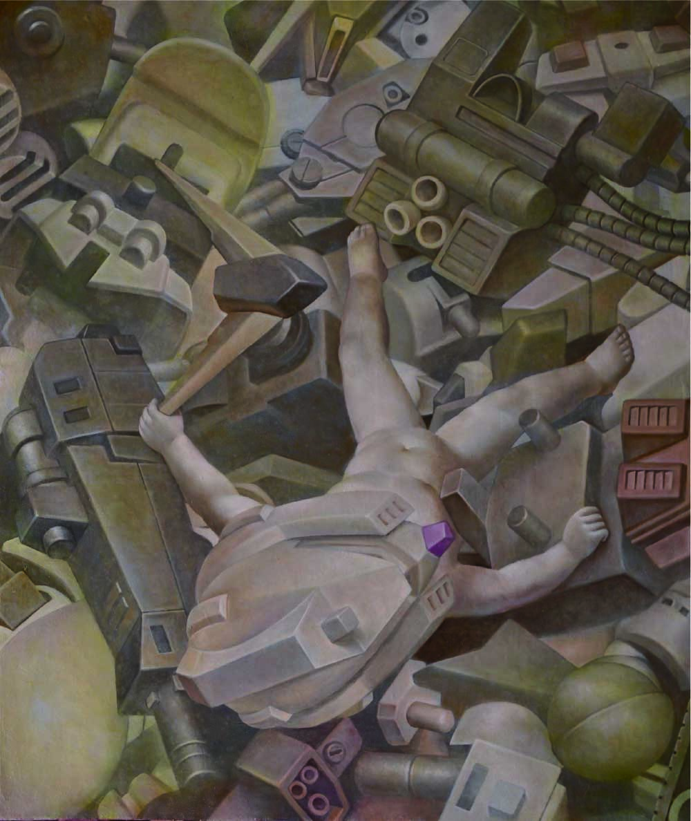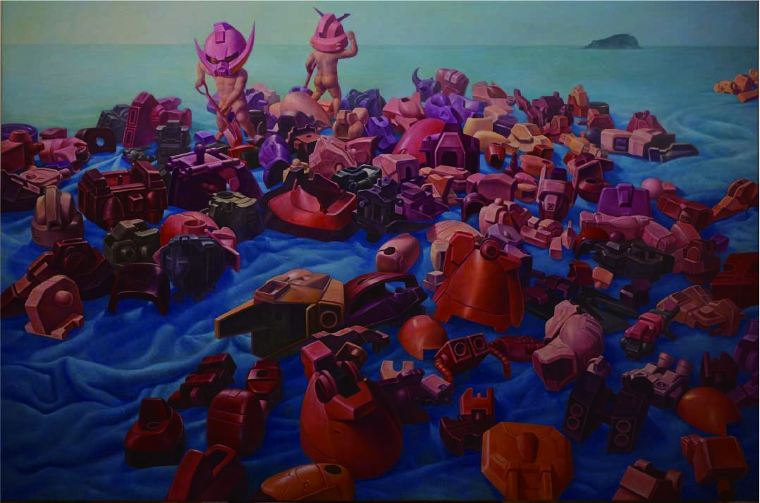 許智瑋畢業於文化大學美術系與台南藝術大學造型藝術研究所,他喜歡收集各式塑膠機械玩具公仔,從其中的零件組合與拆解的結構作為畫面的創作元素,富於故事性,也充滿超現實的空間表現與事件闢喻,許智瑋是台灣當代動漫藝術年輕代表畫家之一,深具個人創作特色。
