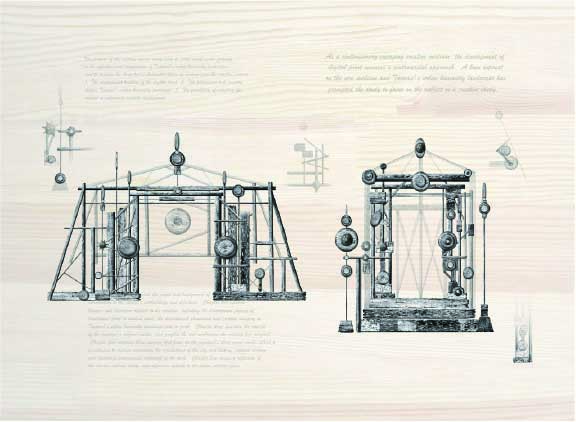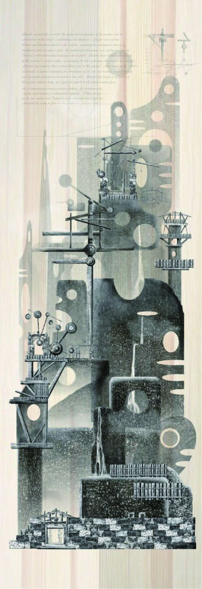 藝術家總是為了創作不停的在與時間競賽,也因為他們的創作往往與其生活作為連結而密不可分。我比較好奇的是目前擔任多個畫會執行長頭銜的藝術家陳昱儒,是如何有效的在繁忙業務中,分出時間創作出這麼多的作品來。一位有效的時間管理者,他能將有限的時間有條不紊的分別安排規劃妥貼。陳昱儒的創作融合版畫與複合媒材,透過歷史文化的思辯沉澱,圖像與文字呈現創作的主軸,帶有象徵意涵而發人生省。