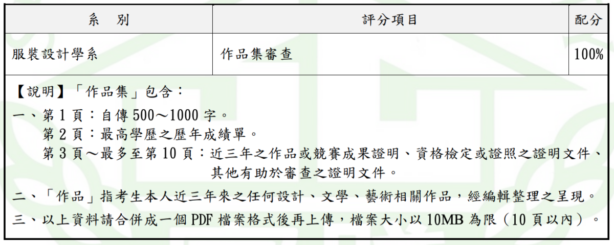 實踐大學113 學年度【進修學士班甄試入學】招生簡章 服裝設計