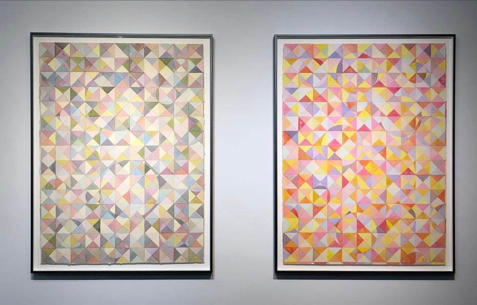 留學西班牙的藝術家莊普(1947-),帶回了冷抽象、幾何、排列這些與東方美學相異的藝術樣態。「以印代手」運用分格、方印、裁切的創作方式,造就出了韻律感與自律性共存的視覺語彙。近年來藝術家也持續使用不同媒材,在規律與和諧中蘊含著不同的生命轉折。