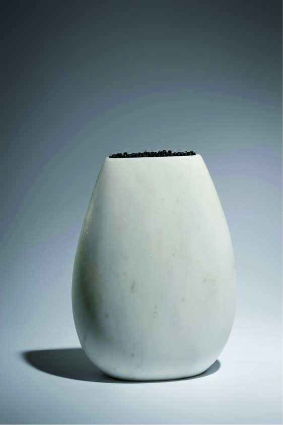 黎志文,《之間》,40 x 29 x 14 cm,黑豆 大理石,2018。圖/問空間提供 非池中藝術網攝