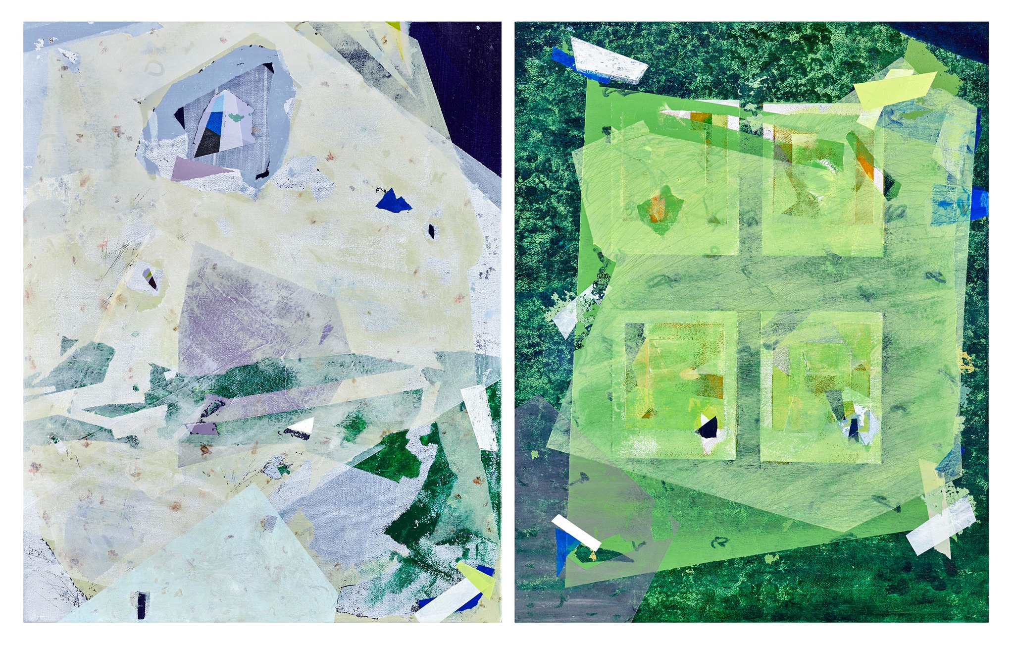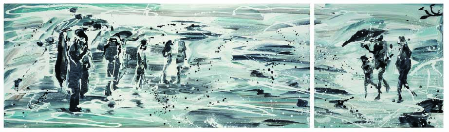 一直以來,高雅婷都把繪畫視為當代多重視窗觀看經驗的反芻。如同製作標本一般必須小心翼翼,她於龐大的藝術史中採樣自己感到興趣的圖像,藉由手感的細膩操作,在如臨似摹、又有自我情感投射的拼貼縫合下,產出蘊含藝術史片段的繪畫表現,也提供了觀者不同的美學感知;有別於「此曾在」的單純紀錄,黃品玲筆下的風景或者來自曾經造訪的地方,或者擷取了眼前不斷流竄的風景影像,都是現實與想像的交匯與融合。透過大筆刷塗抹、堆疊與滲流,偶爾理性刻意地置入些許細節等,描繪出某個難以忘懷或恍惚的片段,讓人們得以盡情徜徉其中。