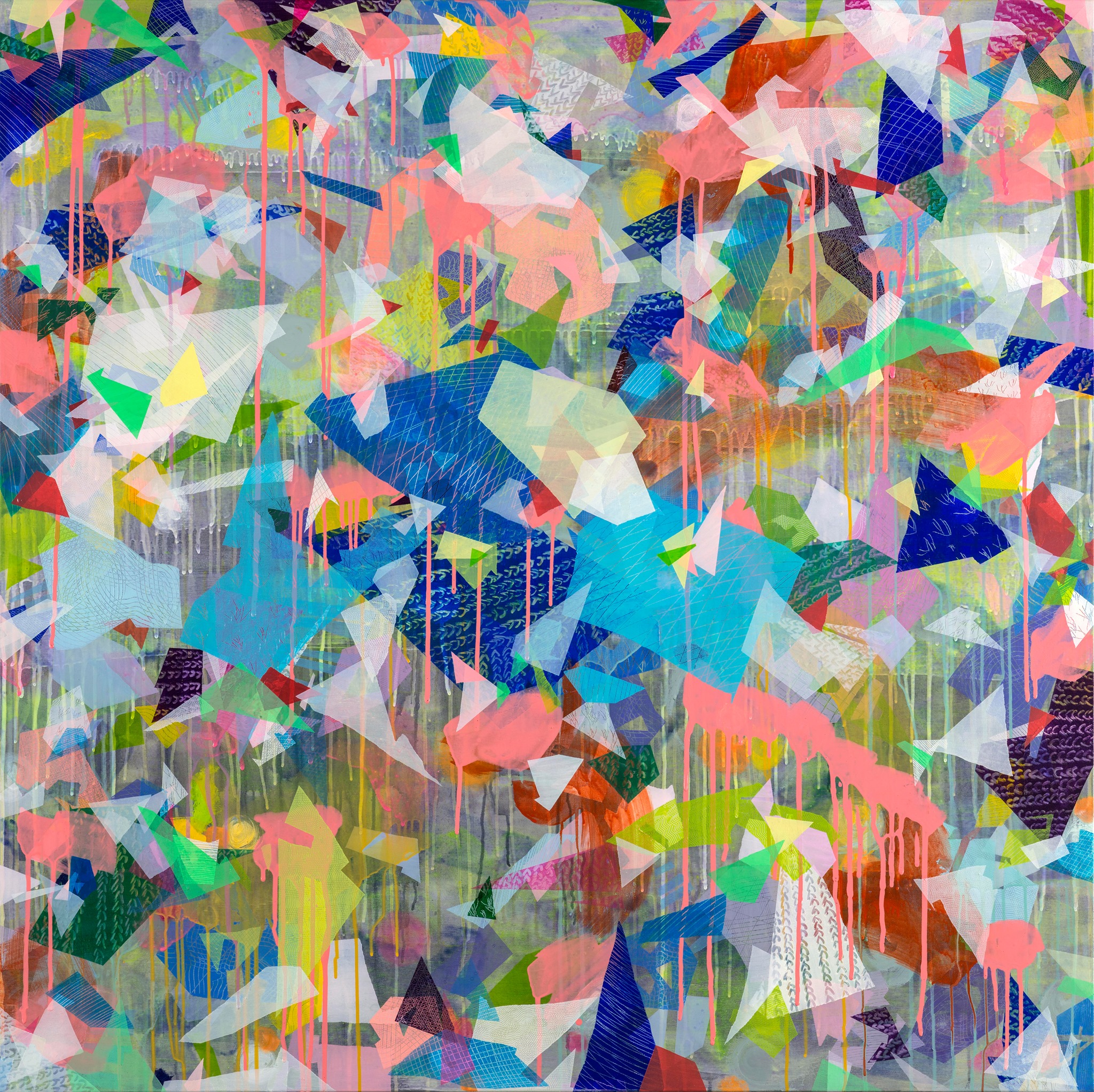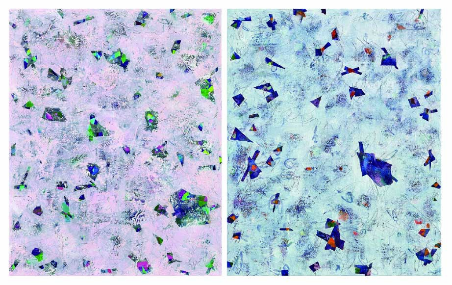 林怡君則將記憶視為繽紛多彩的拼圖,透過增減並行的變化,試圖在畫面上營造出非線性的時間樣態。觀者觸目所及的每一片色彩都像是通往某個特定時刻缺口,當目光與神思鑽進裡頭之後又是另外一個又一個萬花筒似的眩惑景象,充分說明了記憶與情感難以真實再現的本質。