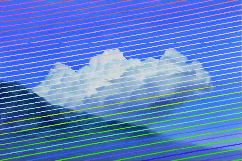 林賢俊將關注的焦點放在既是風景,也可視之為物件,且從來無從被眼睛捕捉的雲朵上面。以此為出發,其作品畫面所展示出來的實際上同時擁有具象與抽象雙重面向,而看似理性操作的結果,卻也默默地含藏了內在情感的隱喻修辭。