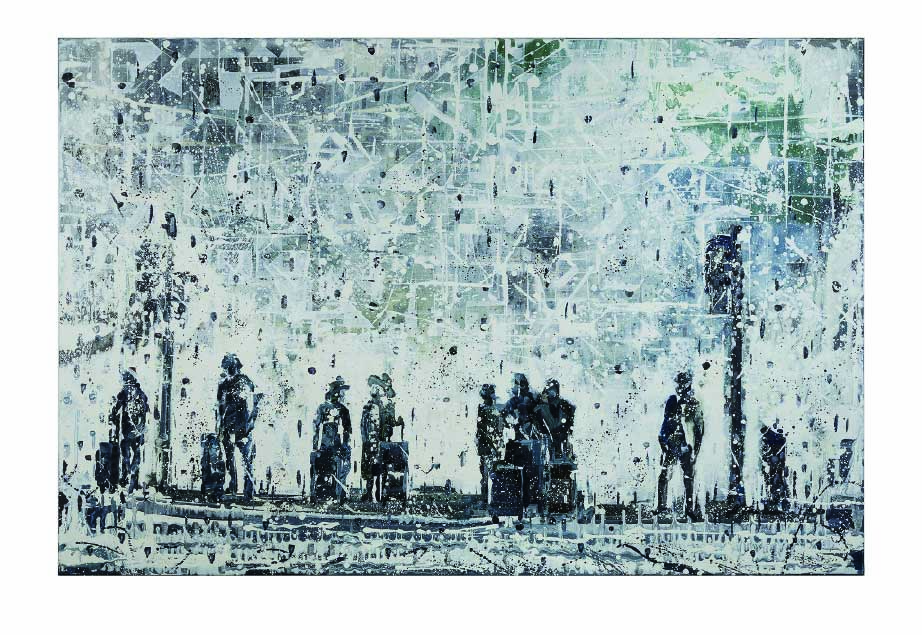 邱建仁擷取日常生活的零碎片段,透過筆觸的反覆塗抹、堆疊與刮除,刻意將可辨識的街景具體所在抹去,讓時間分秒的流逝以充滿影像質地般的模糊面貌展現在畫面上,既是現今世界的反映,也進一步地建構了所有人想像中的共同記憶。