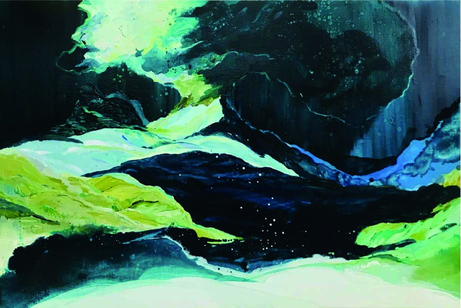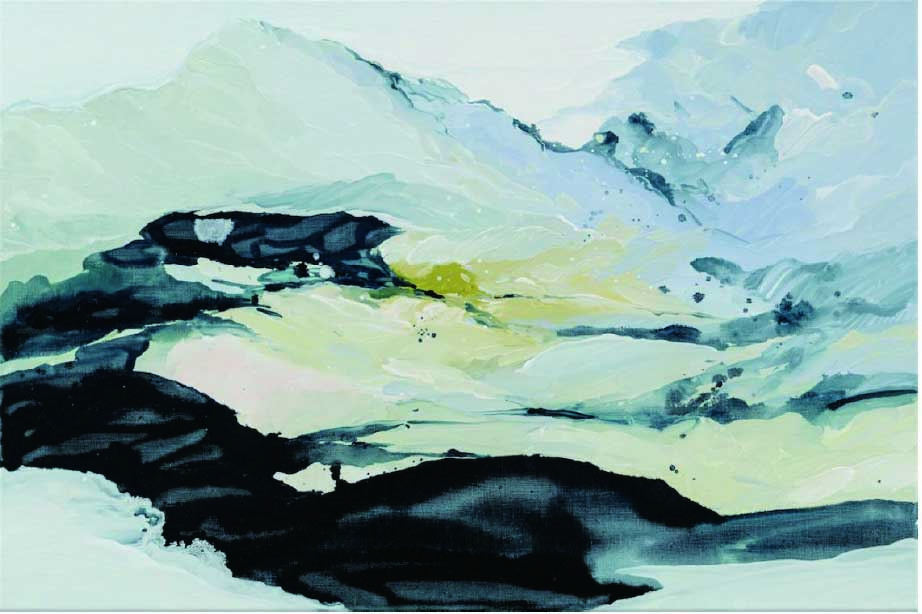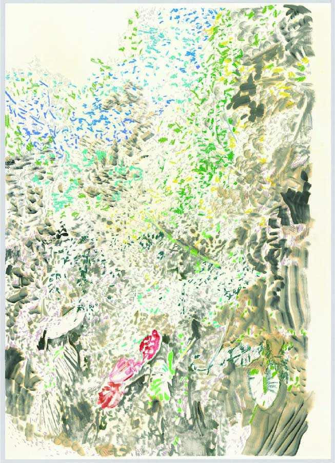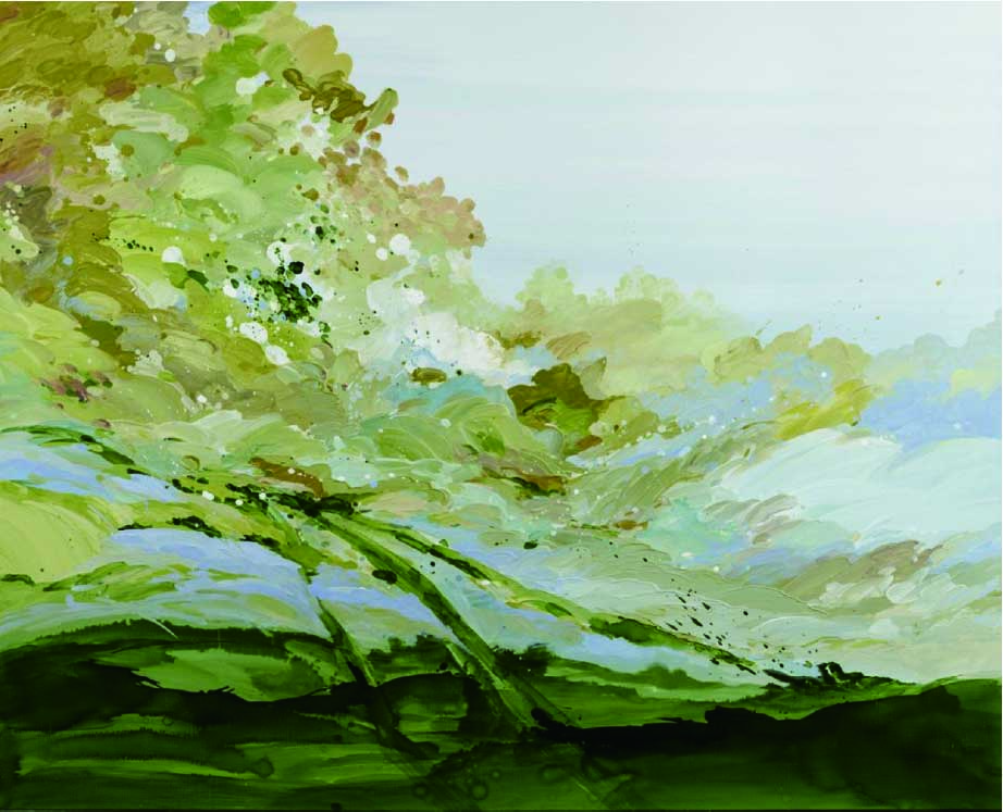 有別於「此曾在」的單純紀錄,黃品玲筆下的風景或者來自曾經造訪的地方,或者擷取了眼前不斷流竄的風景影像,都是現實與想像的交匯與融合。透過大筆刷塗抹、堆疊與滲流,偶爾理性刻意地置入些許細節等,描繪出某個難以忘懷或恍惚的片段,讓人們得以盡情徜徉其中。