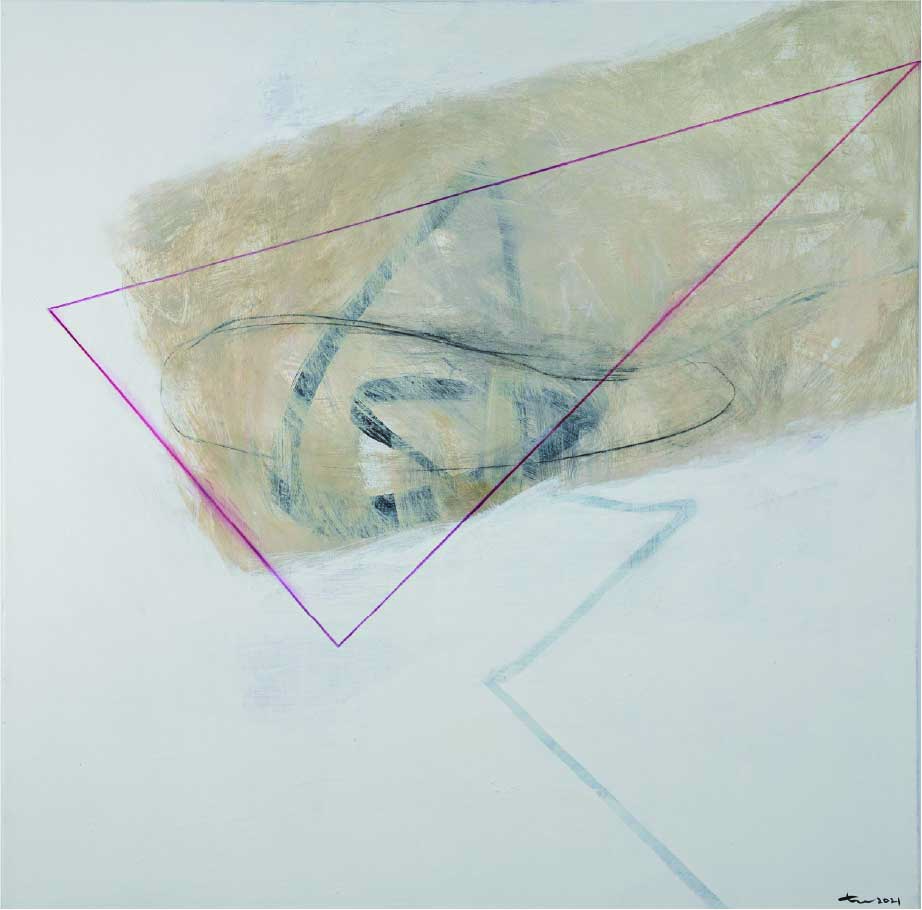王公澤的繪畫充滿了淡雅的氛圍,簡單的線條交錯與空間的呼應,似素描的創作。探索、追尋、實驗,線條在他的創作過程裡不斷的顯示,猶如來自深層的潛意識,試探內與外,亦中亦西的精神與自然交流辯證。