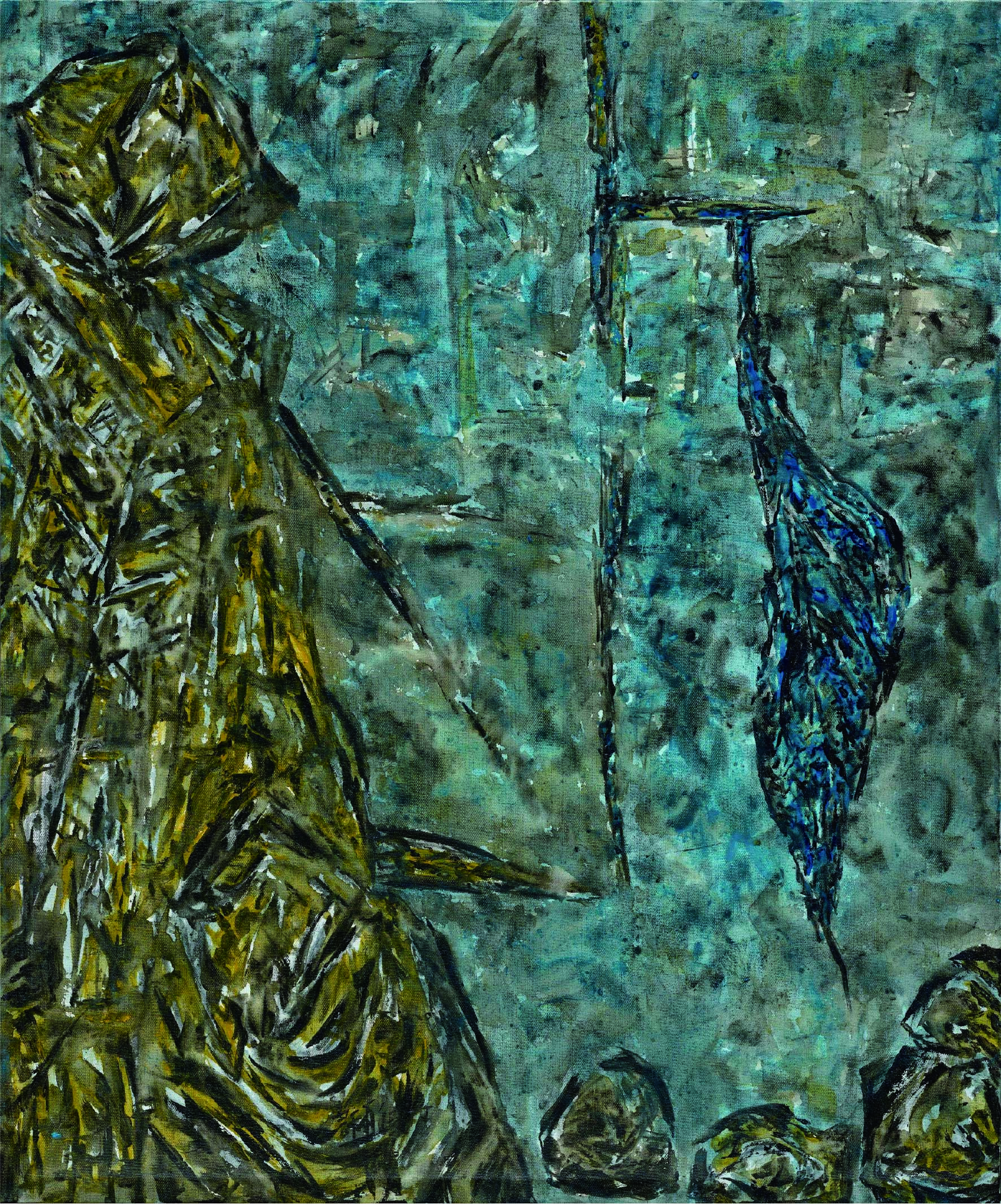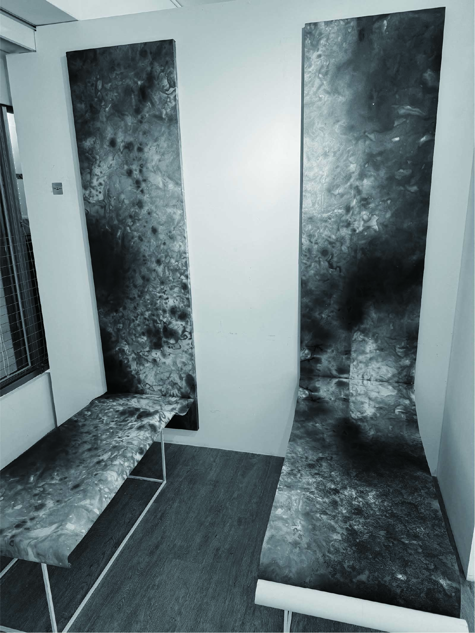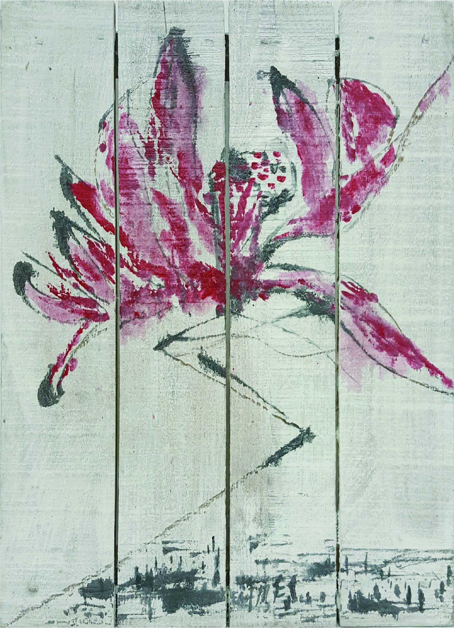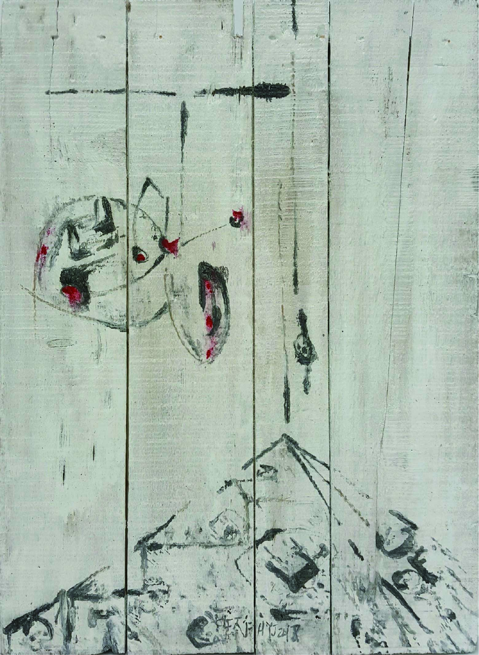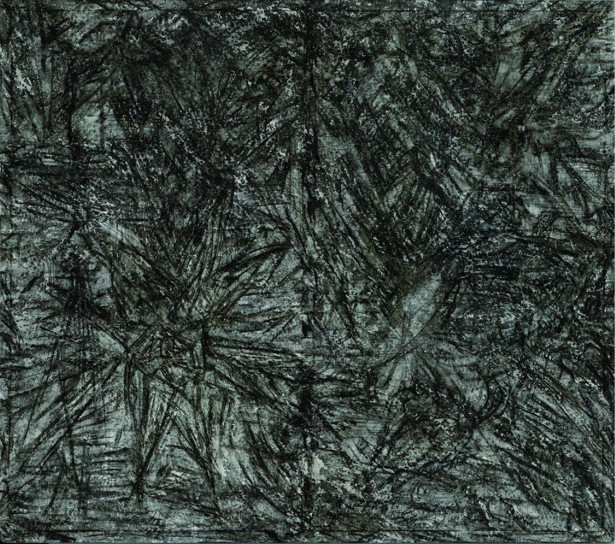 許雨仁先生甫在2024年由北美館策劃《溺浮沉洄:許雨仁回顧展》,其創作面貌風格早有多重論述,針對「驚蟄」策展主題意象,此次擇其與土地及植物關懷畫作31件,展出《粗筆系列》(Rough-brush Ink Plants Series,2007-2014,水墨、紙)、《沒形系列》(Shapeless Series,複合媒材、壓克力片、炭、墨、膠、塑膠布,2015-2021)、《豆腐板書畫系列》(Color Ink Painting onTofu Pallet Series,壓克力、墨,2015-2018)、《彩筆系列》(Color Painting Series,2016,複合媒材、畫布)等四個系列作品。見諸他熱衷倘佯自然之間,對植物成長生機追尋亦多有著墨、終其一生對生長土地周遭環境的關懷反映。藝術家從作品反映問題,透過多重媒材包含水墨、紙、複合媒材、畫布及筆墨表現的新創,具有當代創新觀點,其中「細筆斷續線」為其獨特風格表徵,畫面大量留白更顯示其對傳統水墨中留白布局的體悟體現,對比張力下,風格令人過目難忘。