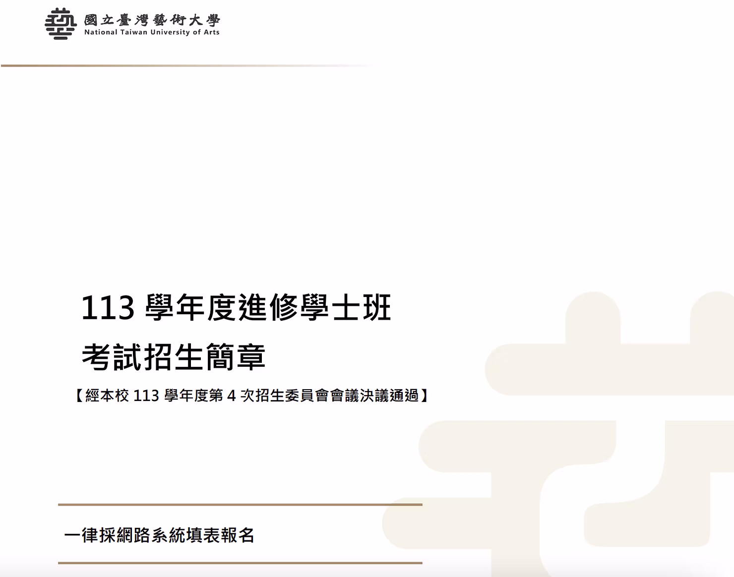 首頁 113年簡章 113 學年度台藝進修學士班 考試招生簡章
